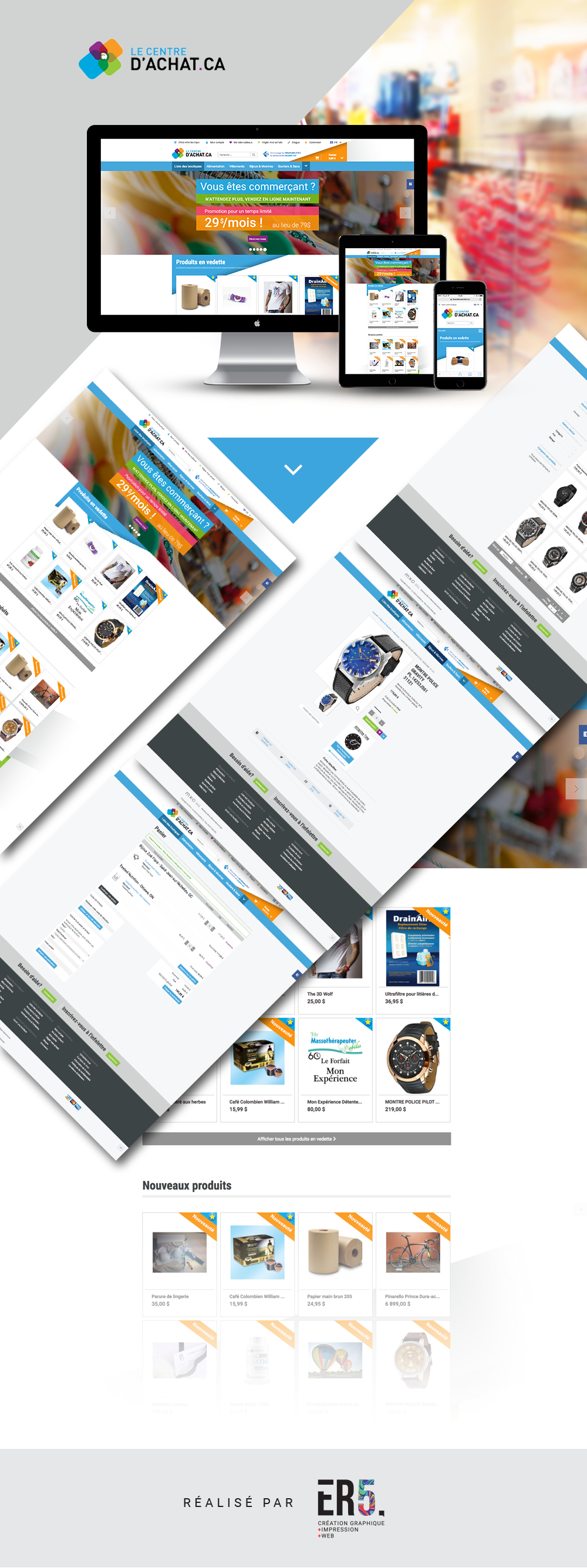 Design graphique du site Web Le Centre d'achat.ca. Projet réalisé pour l'Agence MXO.