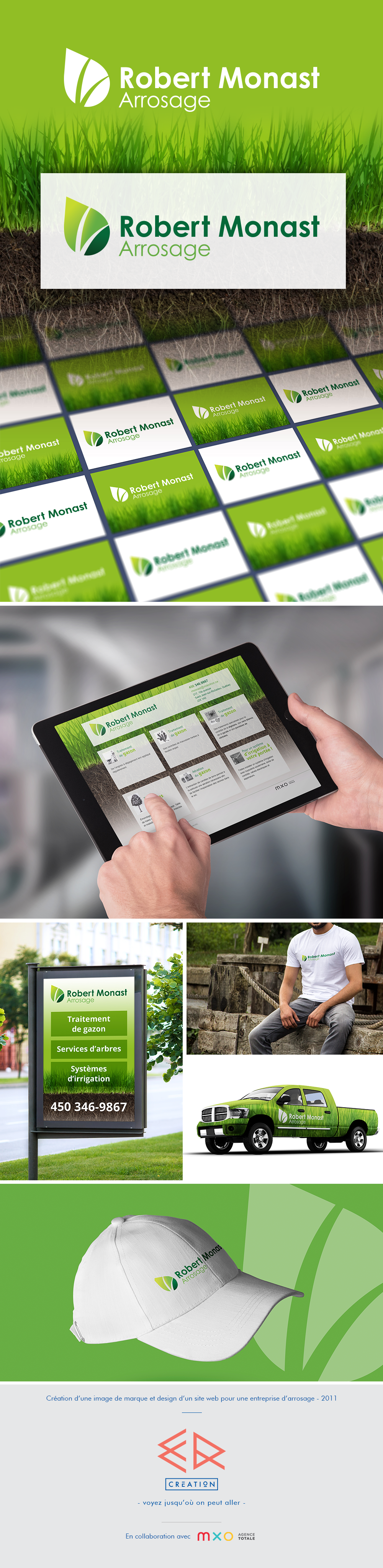 Création d’une image de marque et design du site Web de Robert Monast Arrosage, une entreprise d’arrosage. Projet réalisé pour l'Agence MXO.